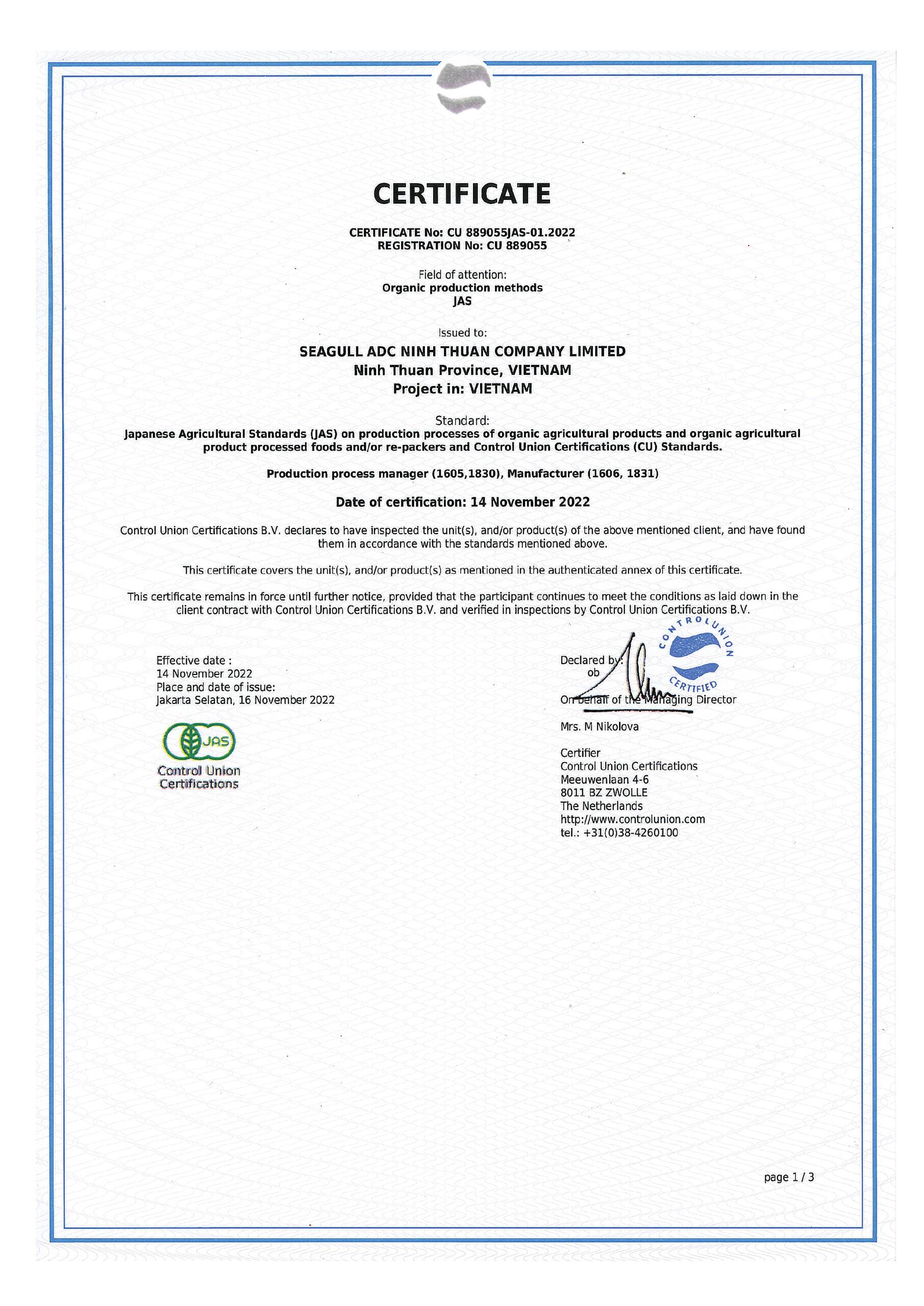 Japanese Agricultural Standard (JAS) Organic Certification.